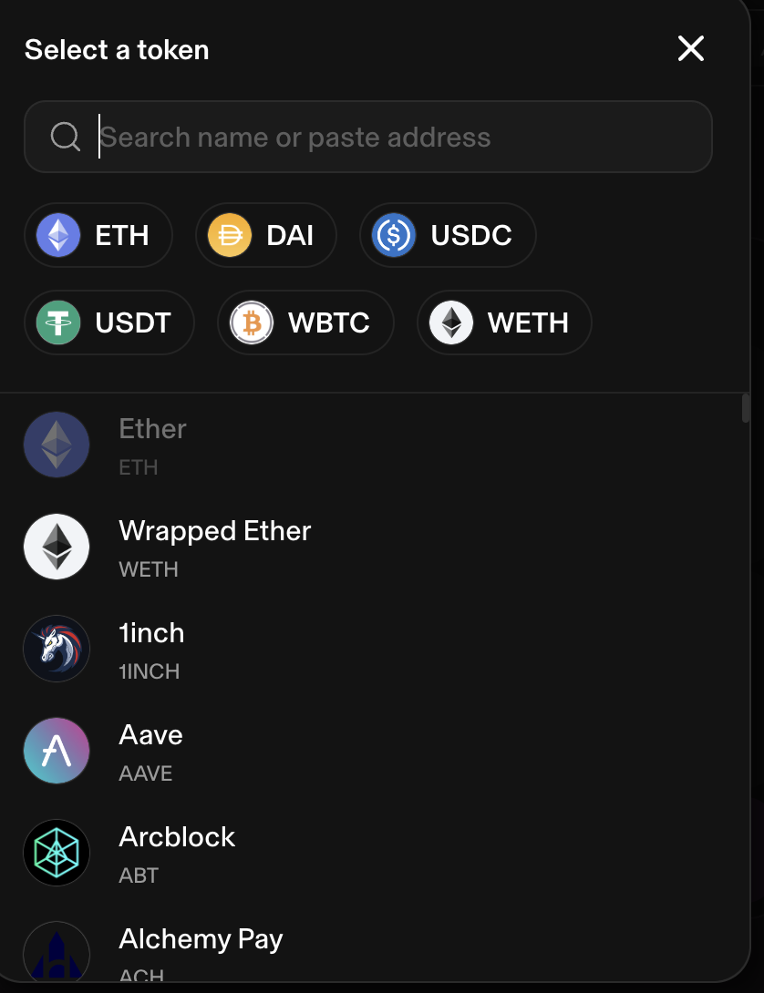 Click 'Select token' and within the search bar, paste the token address that you copied earlier in the process